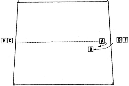 Рекомендации: тренер может предложить игроку преследовать партнера, передвигаясь обычным способом, но спиной вперед или боком, когда он оказывается преследуемым, - это придаст упражнению состязательный элемент.