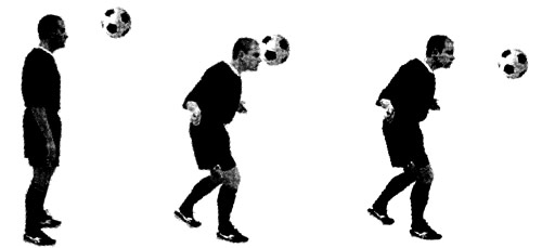 Игрок должен наклониться вперёд и напрягать мышцы шеи. Контакт с мячом должен производиться с помощью лба.