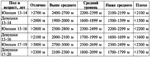 Нормативы теста Купера для лиц младшего возраста: