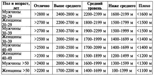 Нормативы теста Купера для лиц старшего возраста