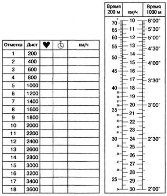 Рис. 10.1. Таблица для записи текстовых данных и шкала для определения скорости бега