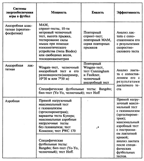 в действие анаэробный алактатный источник, затем — анаэробный лактатный, и, наконец — аэробный. Каждый из тестирующих методов имеет свою область применения для определения конкретных характеристик энергоисточника (табл. 2)
